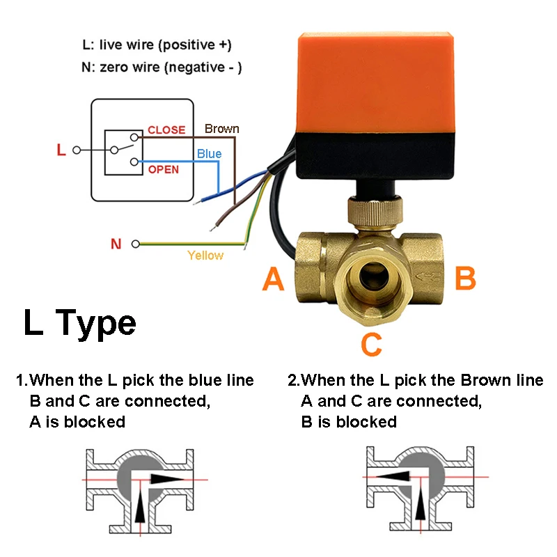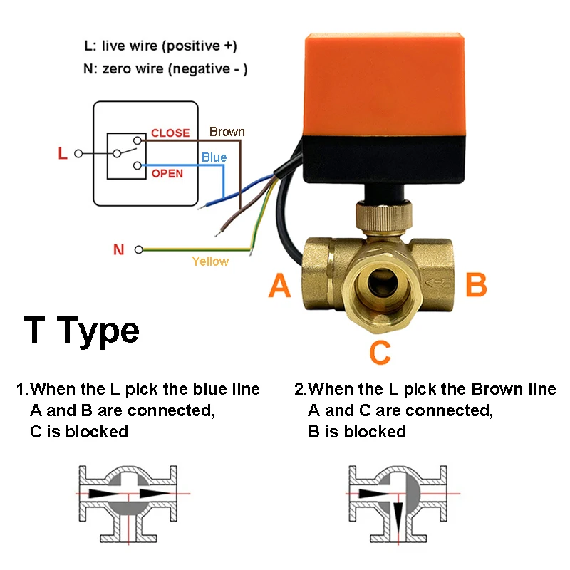1/2" 3/4" 1" 1-1/4" 1-1/2" 3 Way Motorized Ball Valve T/L Type 220V 24V 12V 3 Wire 2 Control Electric Ball Valve