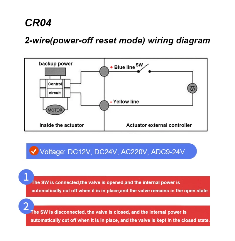 Operation Mode: Three Wire Two Ways Control/Three-wire One Control mode/2-wire, (power-off reset mode)