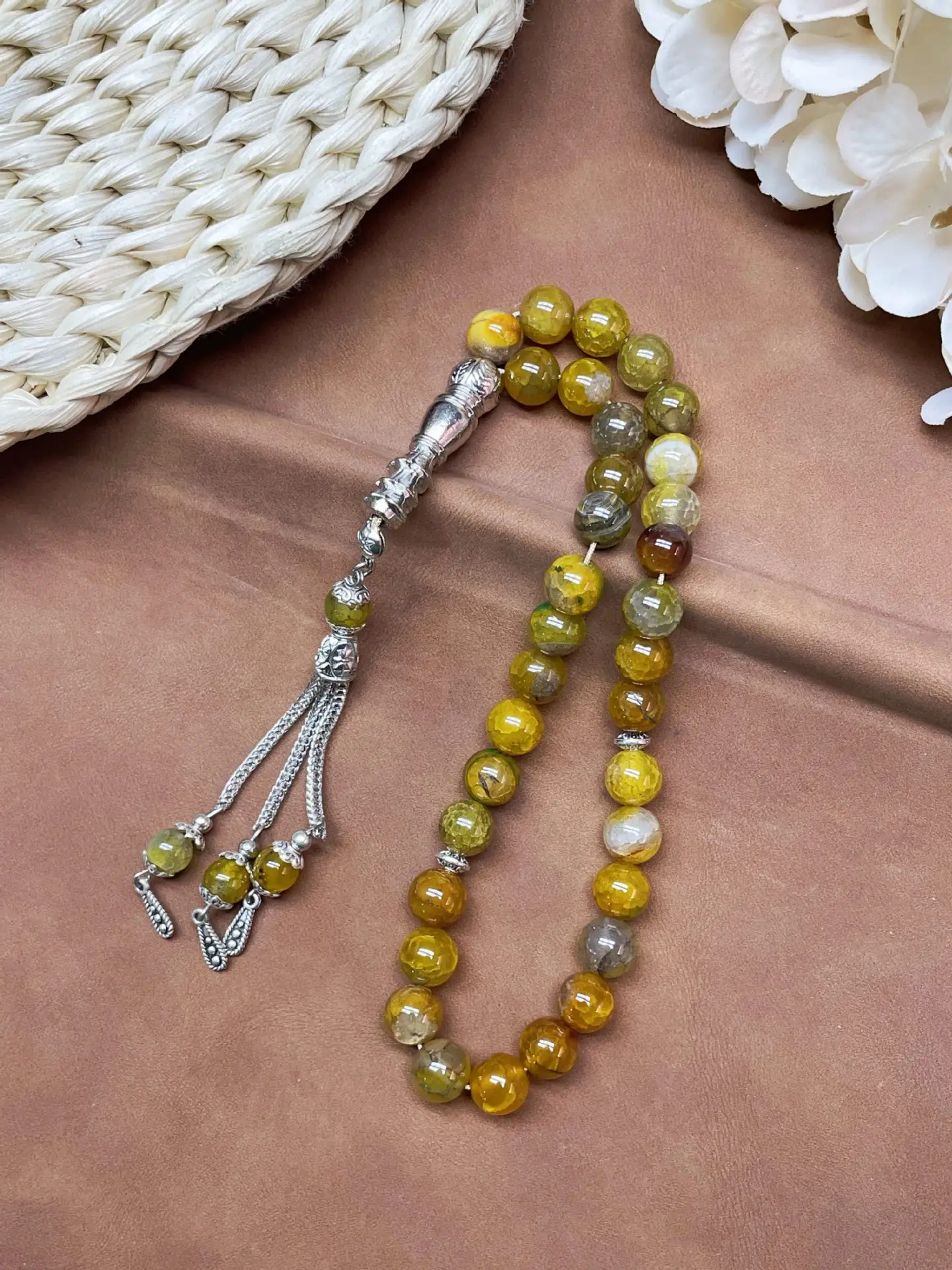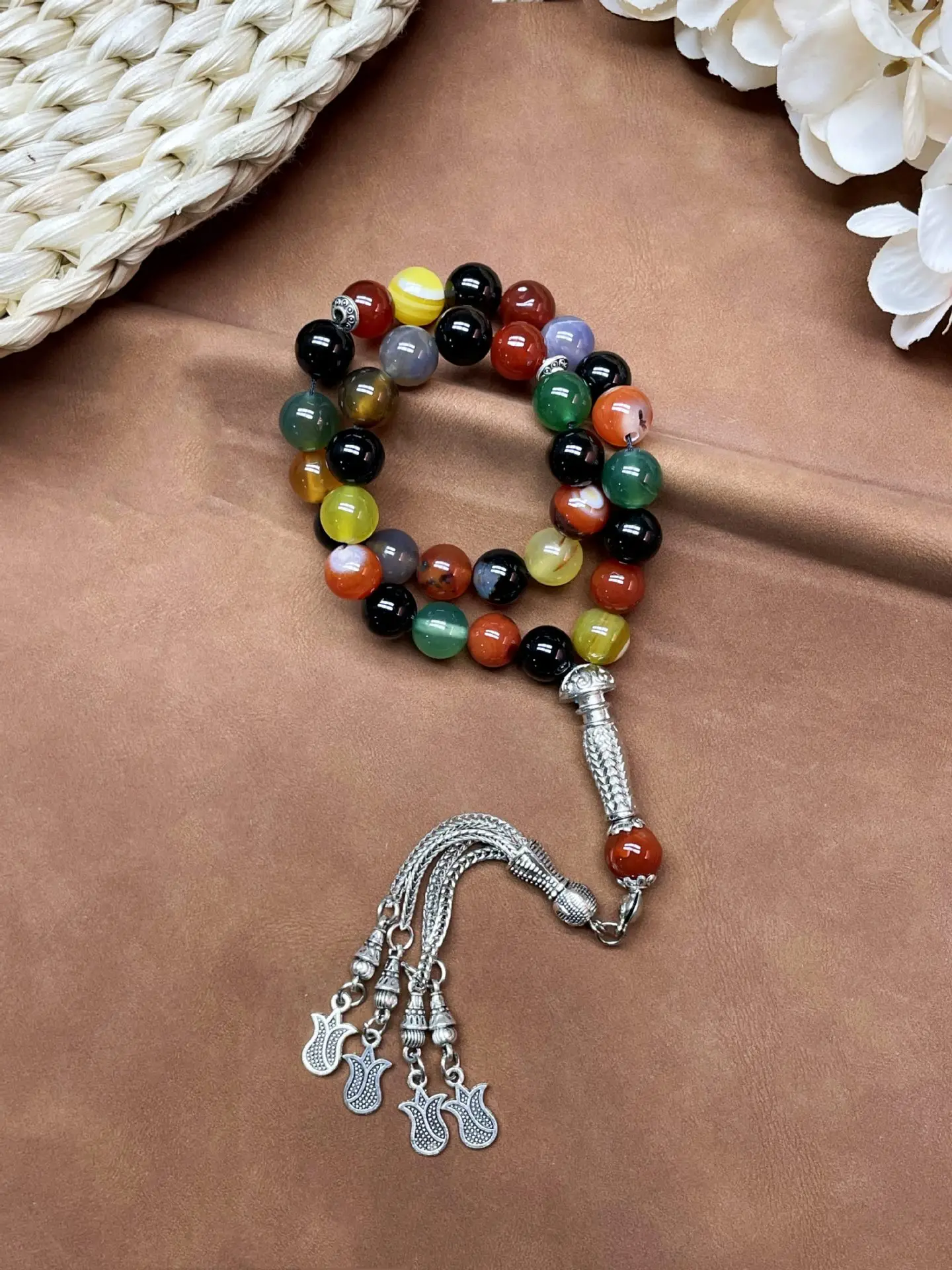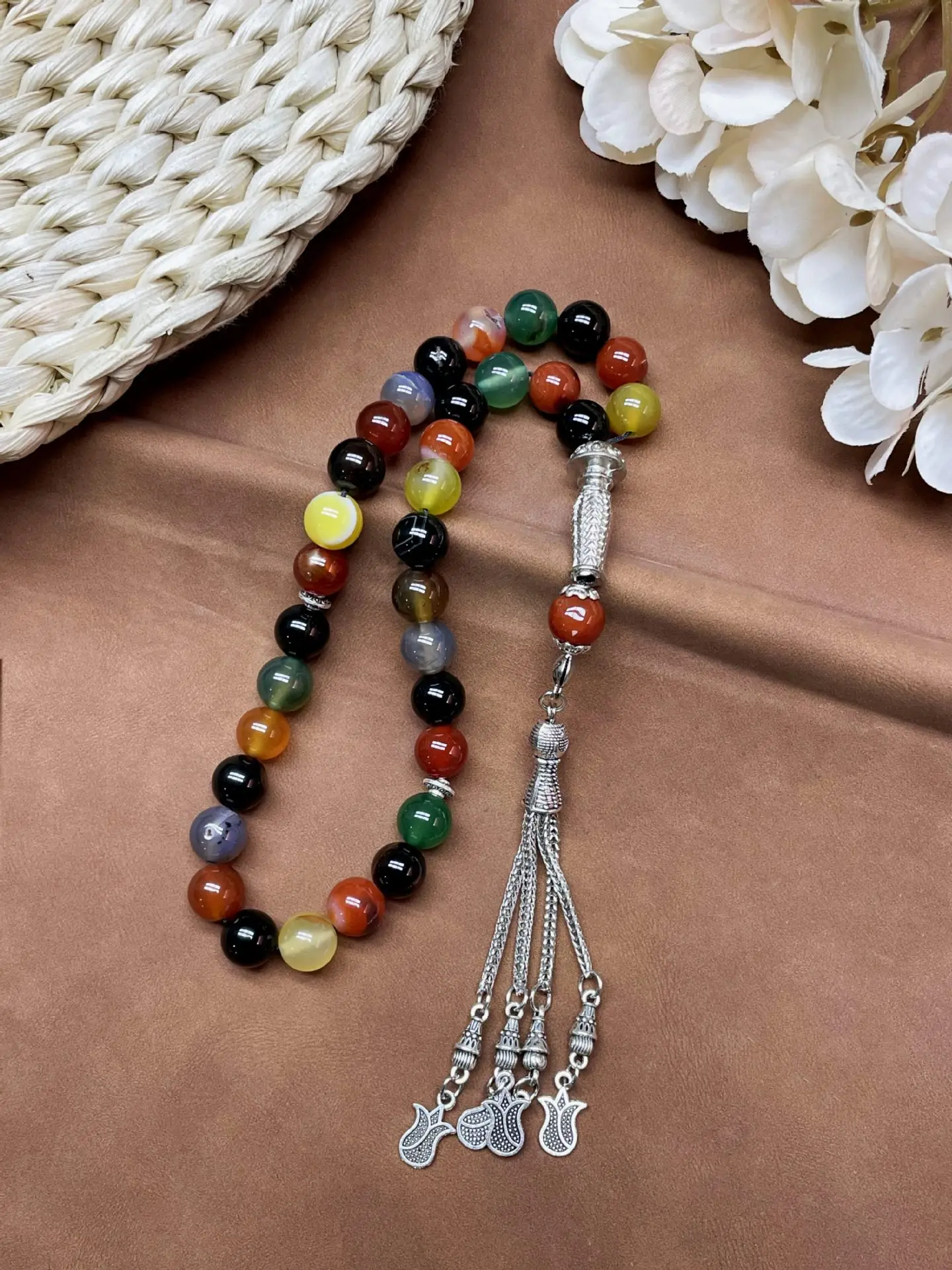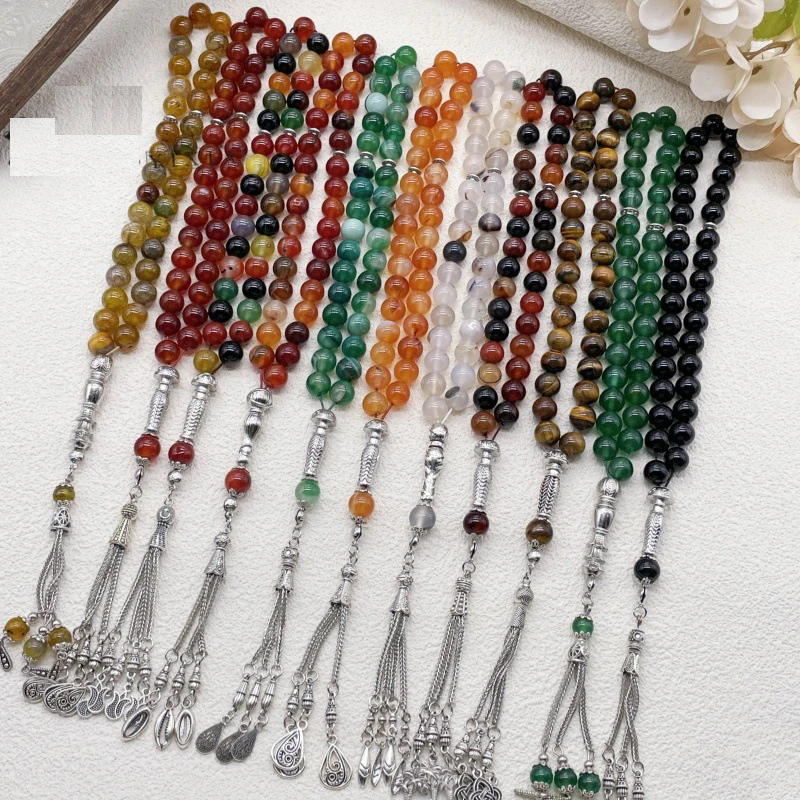 11pcs Islamic 33 Beads Glass Tasbih Arabic Prayer Misbaha Sebha Bracelet Hand Chain Muslim Rosary Jewelry for Men Women Gift