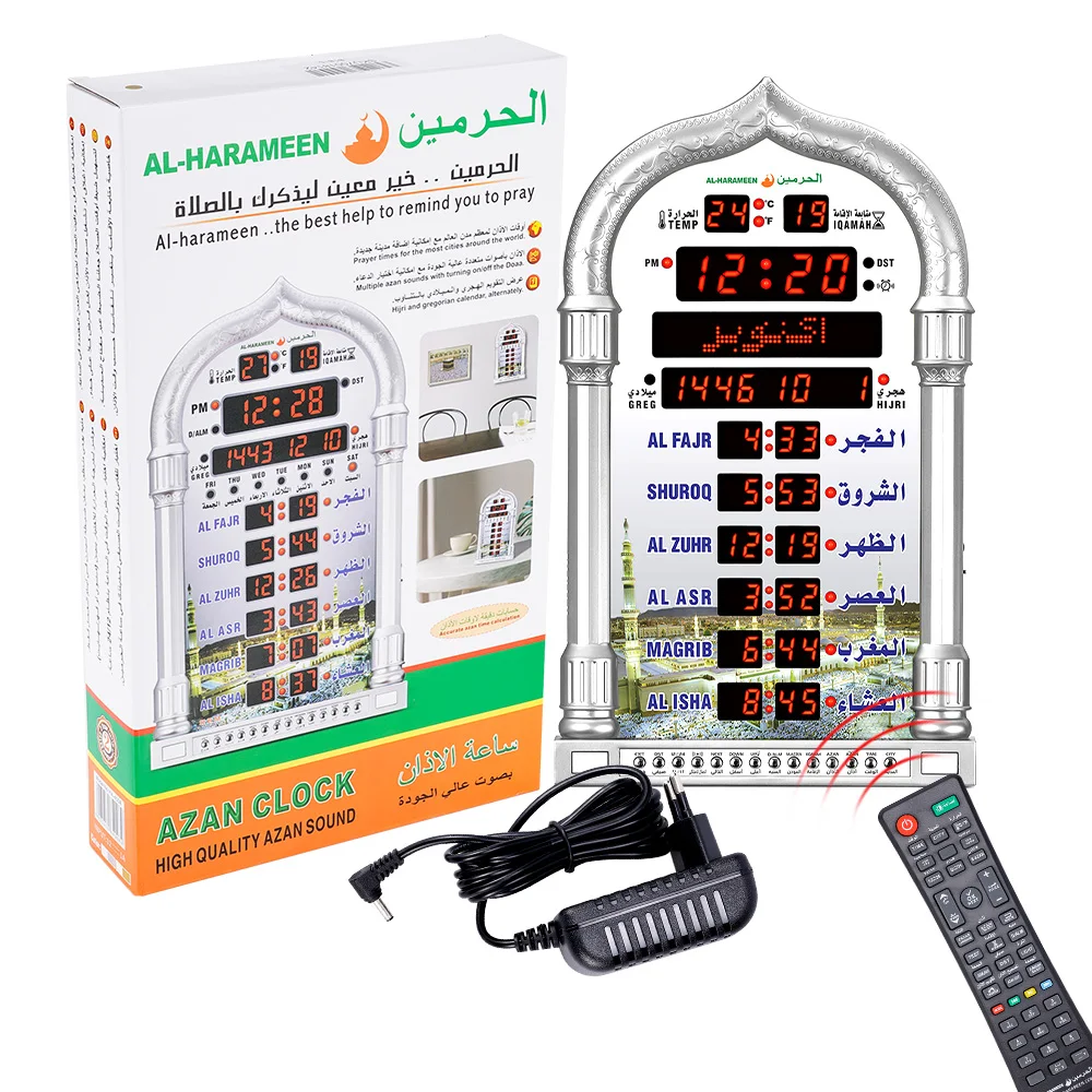 12V Azan Mosque Prayer Clock Islamic Mosque Azan Calendar Muslim Prayer Wall Clock Alarm Ramadan Home Decor Remote Control