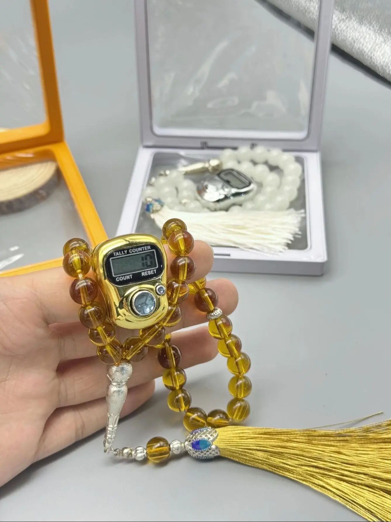 1PC 33 Beads Misbaha Counter Set - Golden/Silver Prayer Beads with Transparent Gift Box | Tasbih Dhikr Counter for Muslim