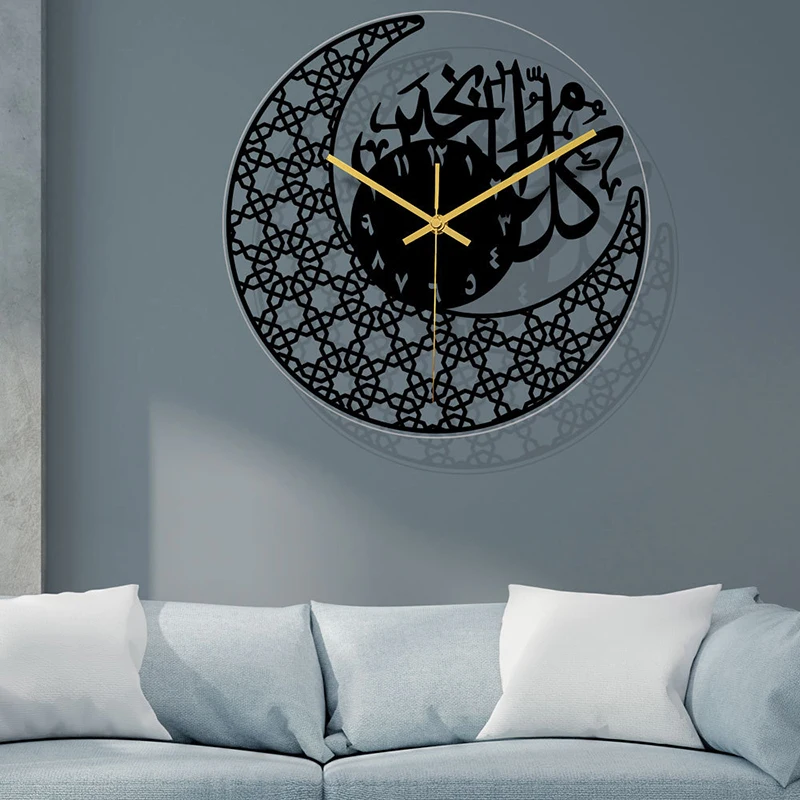 1pc Acrylic Mirror Decorative Clock Islamic Calligraphy Decoration Silent Wall Decor Home Clock Clock Wall 3d Pendulum