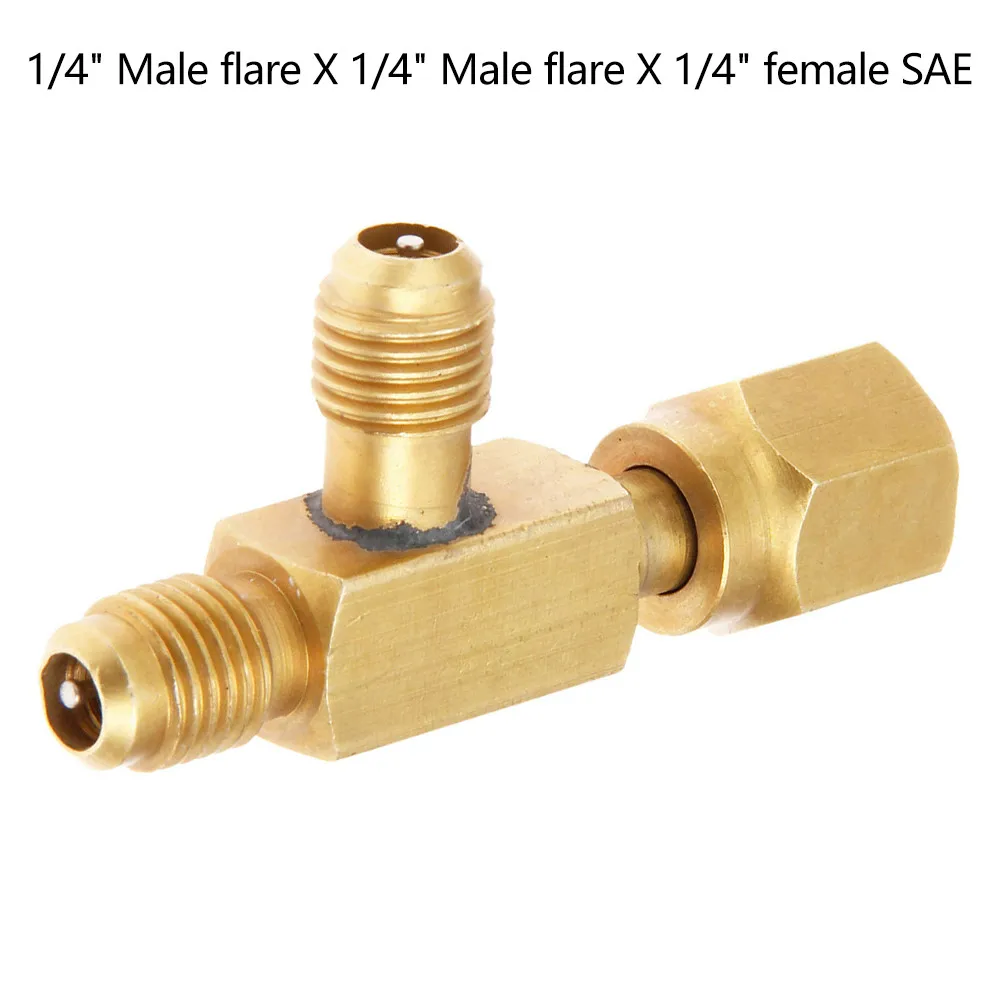 1pc T Type Adapter Tee Adapter 1/4X1/4X1/4\"SAE Flare Add Gauge Deep Vacuum Pump/Manifold Set Solid Brass Tee Adapter