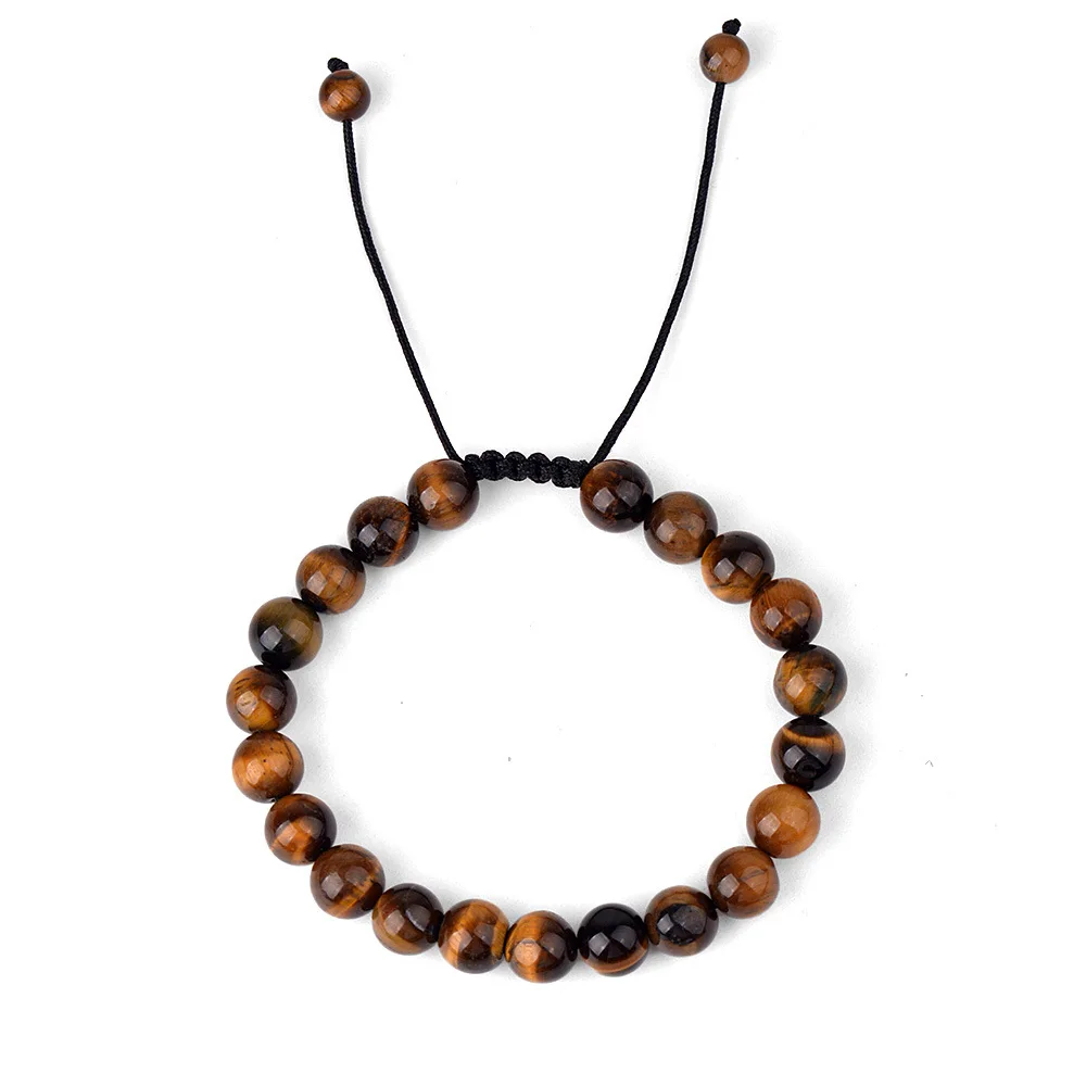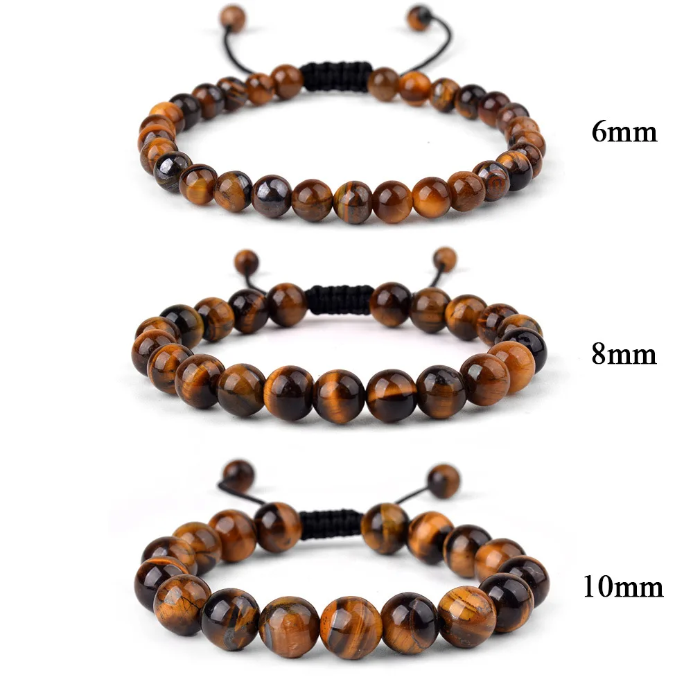 6mm 8mm 10mm Natural Stone Bracelet, Tiger Eye Agate Lava Bead Unisex Adjustable Handwoven Boho Jewelry Gift for Men Women