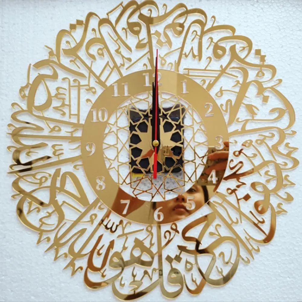 Acrylic Surah Al Ikhlas Wall Clock Islamic Calligraphy Eid Decor Wall Clock Acrylic Mirror Decoration Clock