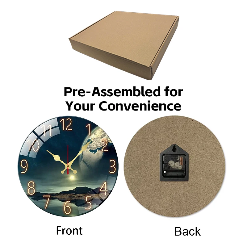 Earth Landscape Wooden Round Silent Hanging Wall Clock, Suitable For Living Room, Office, Study Room, Bedroom, Home Decoration
