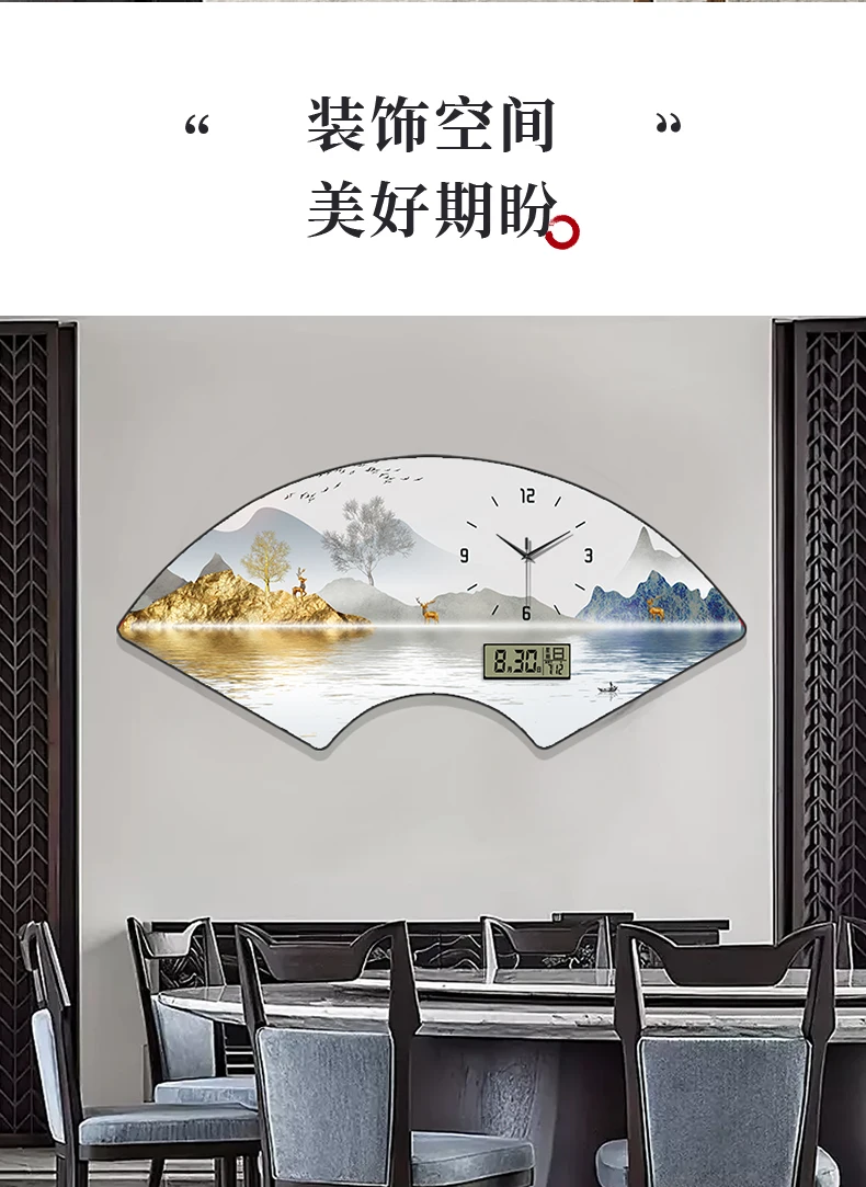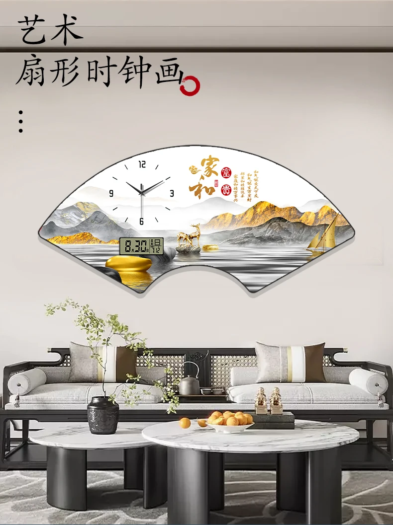 Fan-shaped Perpetual Calendar Electronic Clock Simple Wall Clock Living Room Dining Room Decoration Lamp Picture Clock