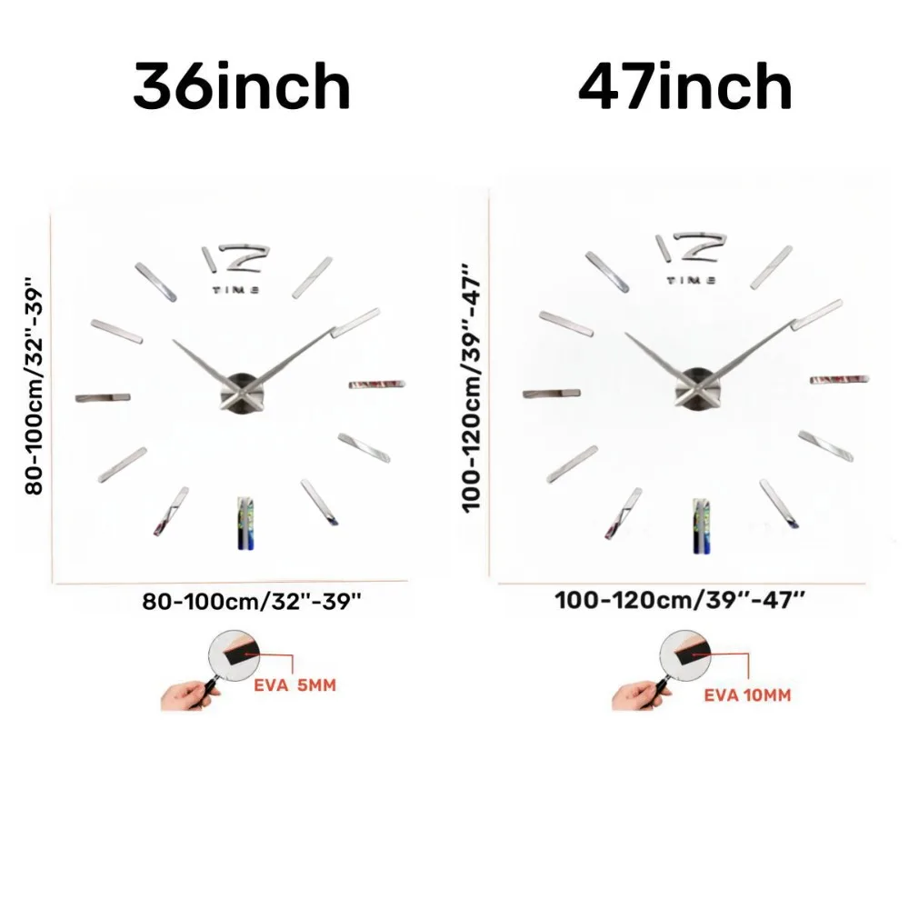 ADJUSTABLE SIZE: With the frameless design, you can easily extend or reduce the diameter of the big wall clock to fit different sizes of walls.