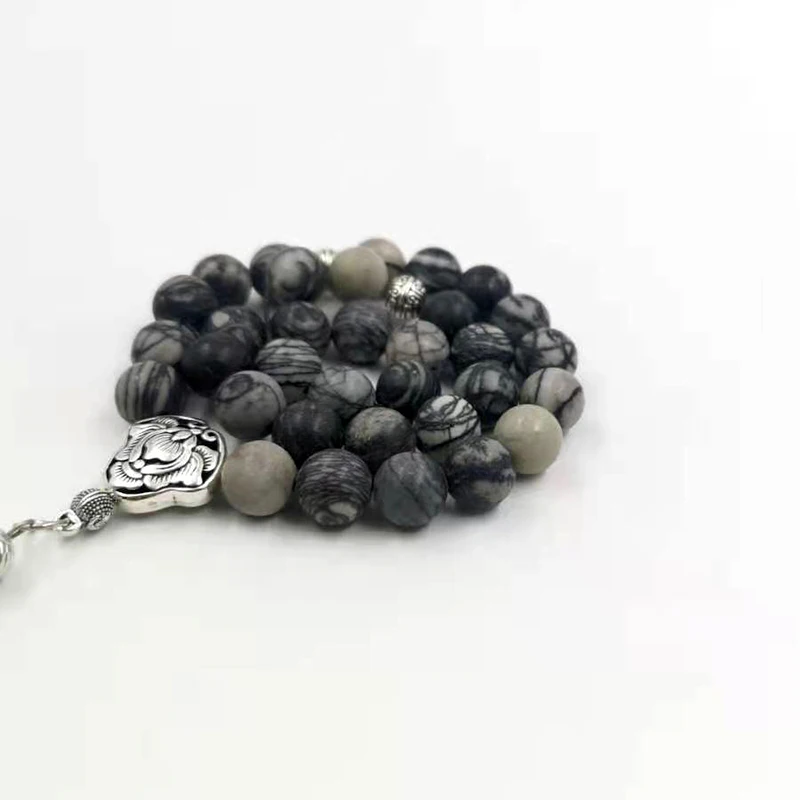 Natural Black Network Jasper with arabic pendant misbaha muslim prayer beads islamic eid gift rosary Tasbih