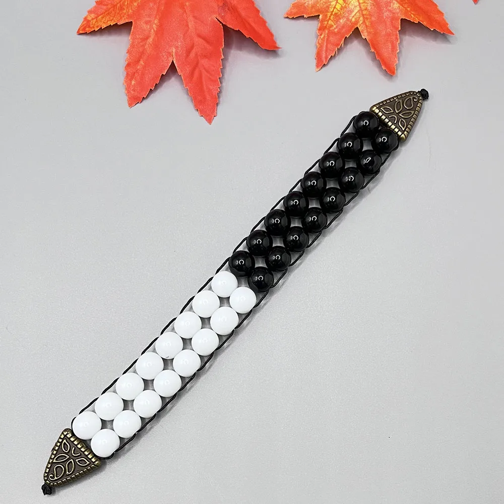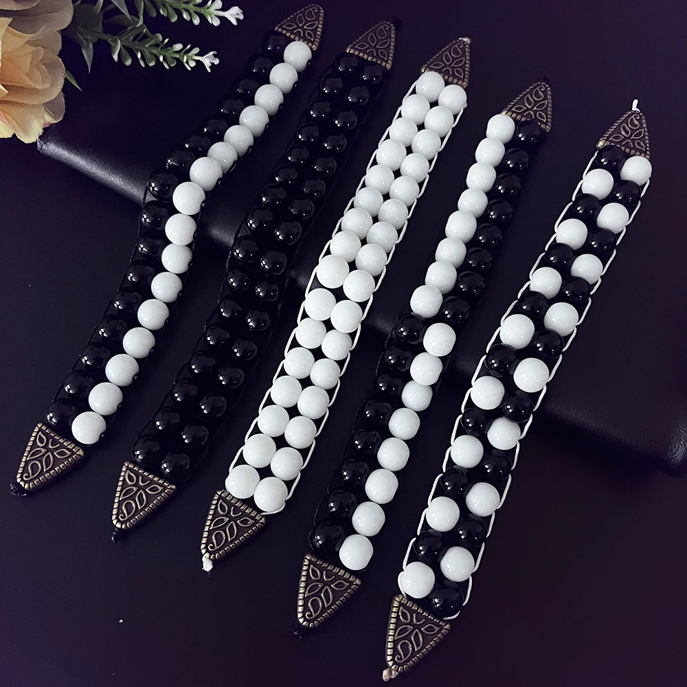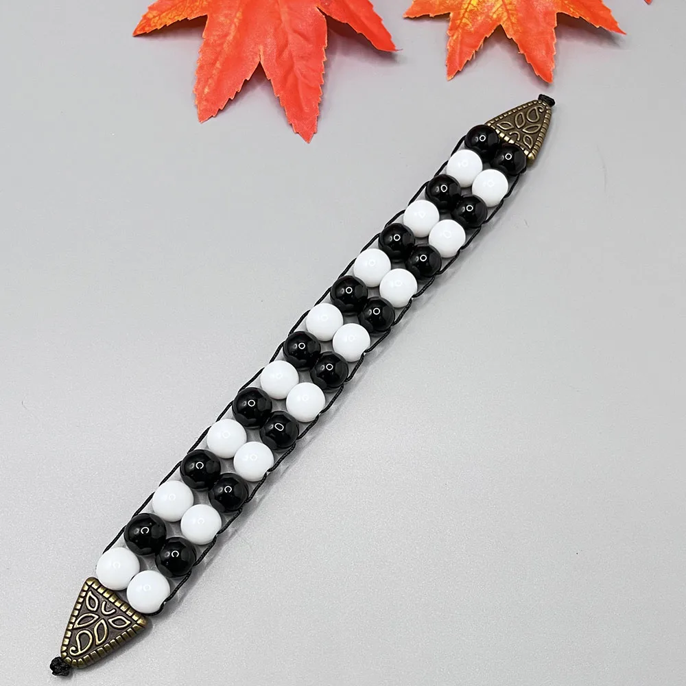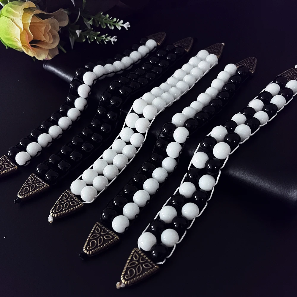 NJ11 New Rosary Men Glass Black White Beads Alloy Flip Muslim Islamic Prayer Bracelets Meditation Transforming Fate Jewelry Gift