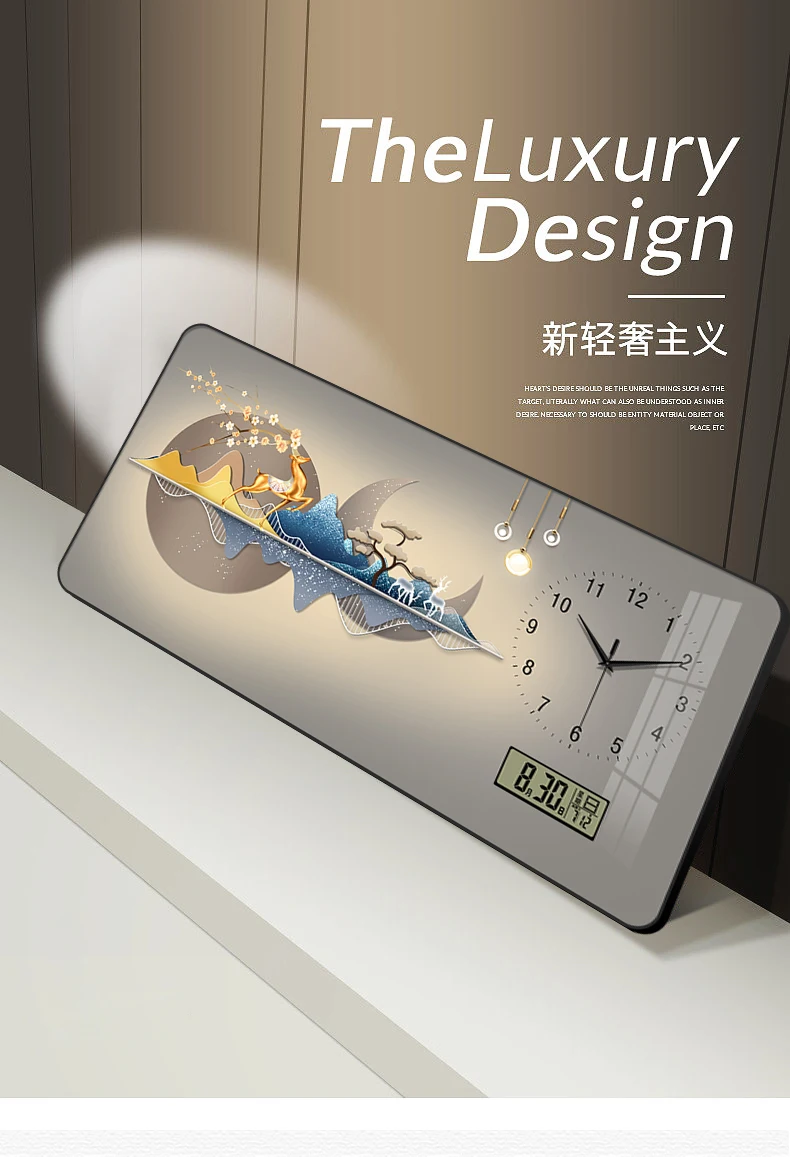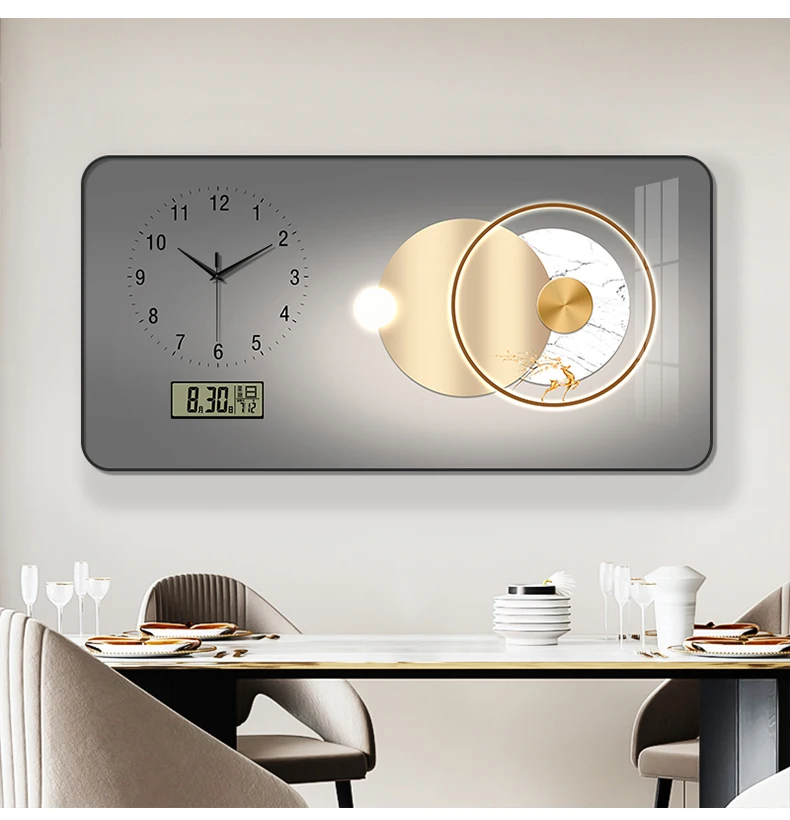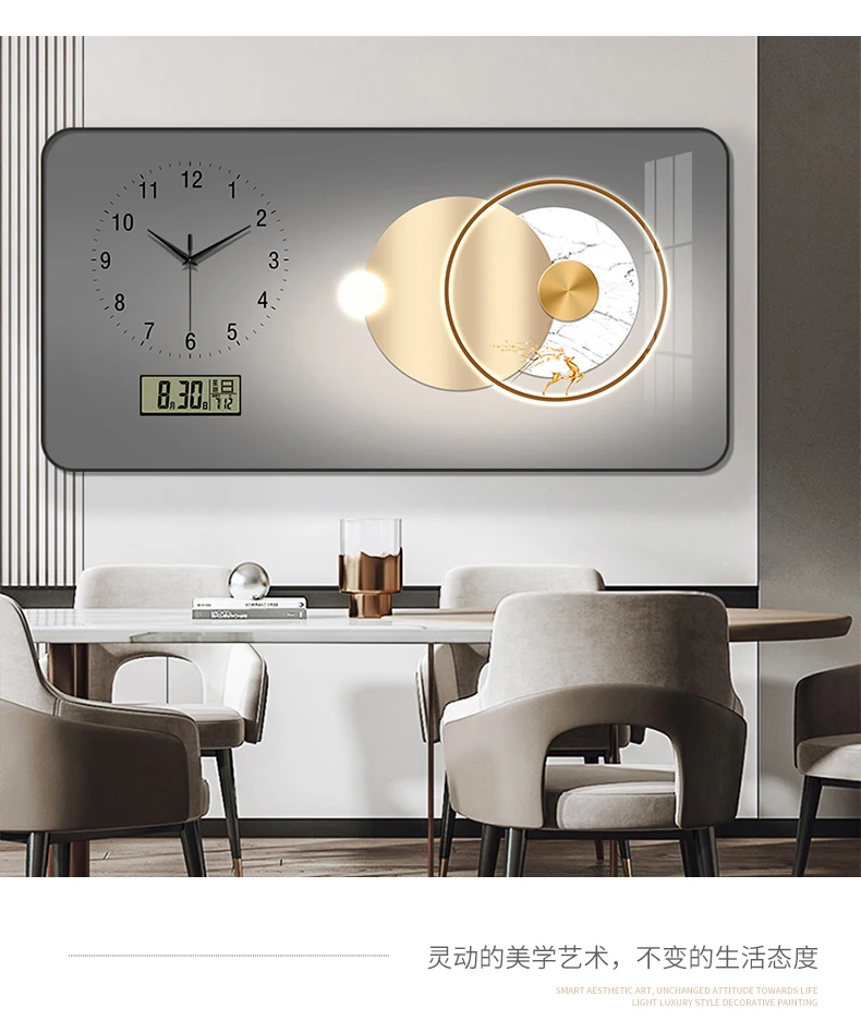 Nordic Light Luxury Clock Wall Clock Living Room and Restaurant Decoration Painting Light and Shadow Elk Perpetual Calendar