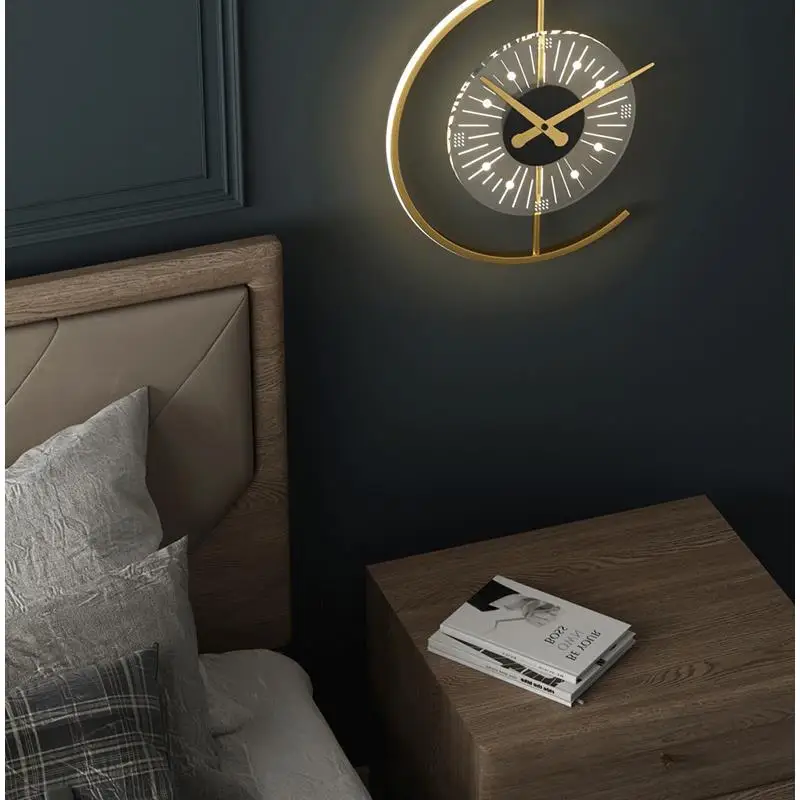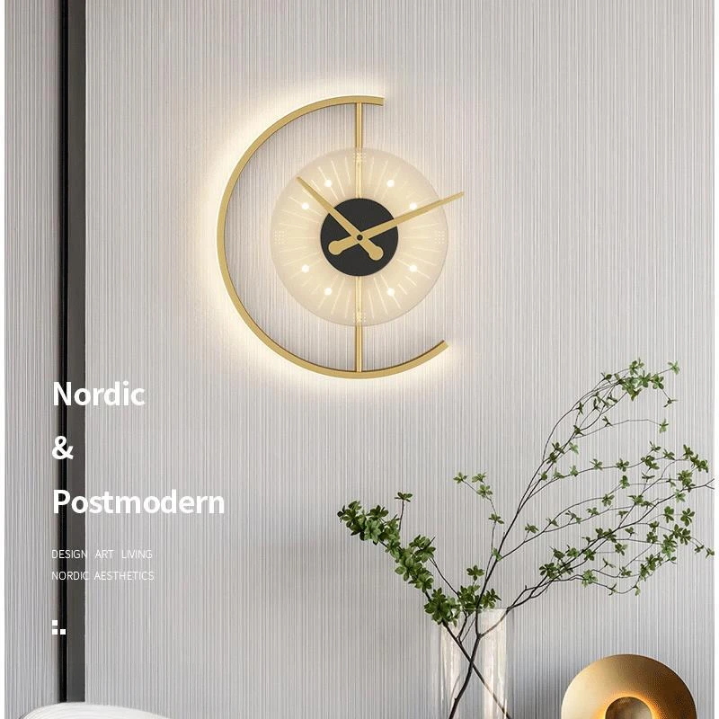 SANDYHA Nordic Clock Wall Lamp Living Room Background Wall Bedroom Headboard Light Modern Minimalist Decorative Lighting Fixture